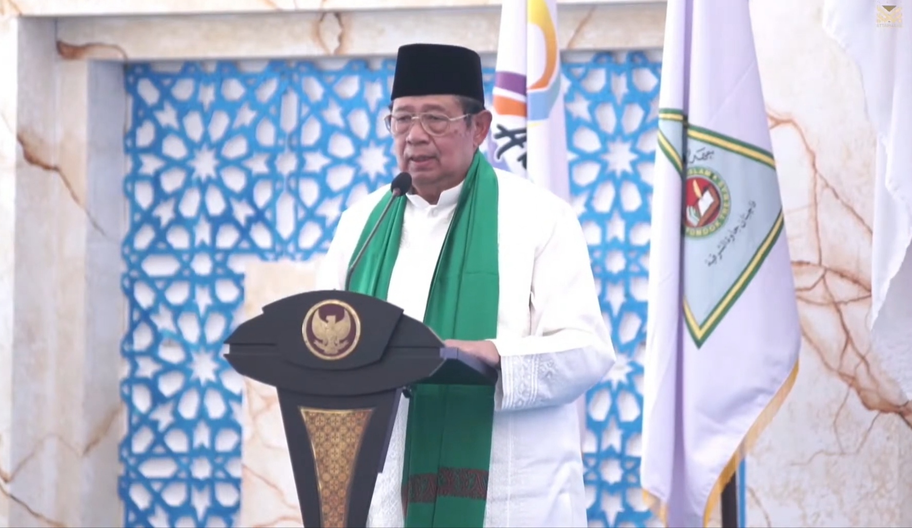 PACITAN – Presiden ke-6 RI Susilo Bambang Yudhoyono (SBY) memberi kuliah umum kepada santriwan-santriwati di Pondok Pesantren Tremas, Kecamatan Arjosari, Pacitan. Kehadiran SBY di Desa Tremas yang merupakan kampung kelahirannya tersebut mendapatkan sambutan hangat dari ribuan peserta.