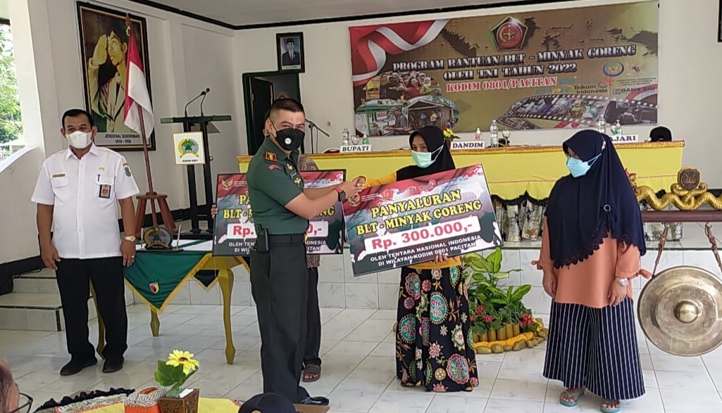 Pacitan – Komandan Kodim 0801/Pacitan bersama unsur forkopimda Kabupaten Pacitan melaksanakan kegiatan Lounching Program BLT (Bantuan Langsung Tunai)-Minyak Goreng oleh TNI TH. 2022 diruang aula Kopral Sigit Makodim 0801/Pacitan Jl. Letjen R. Suprapto No.42, Barean, Sidoharjo, Kecamatan Pacitan, Kabupaten Pacitan, Rabu Pagi, (18/05/2002).