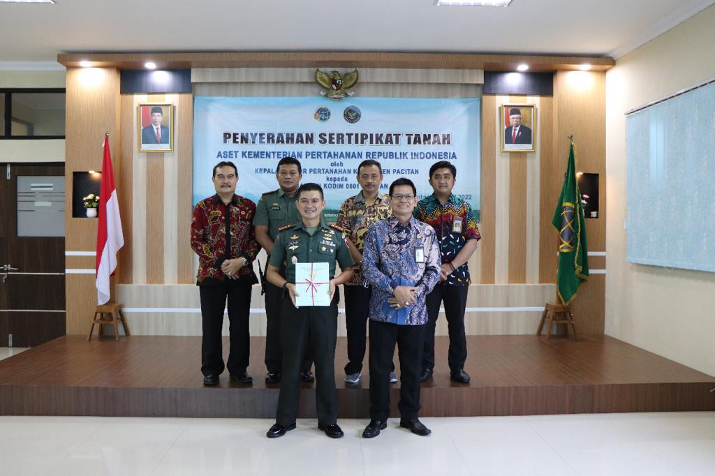 Bukti dari selesai disertifikasikan ditandai dengan Kodim 0801/Pacitan menerima sertifikat atas kepemilikan aset tanah yang terbagi dalam beberapa titik tersebar di wilayah Kodim 0801/ Pacitan yang dihadiri langsung oleh Komandan Kodim 0801/Pacitan Letkol Kav Ibnu Khazim S.I.P., M.Si.