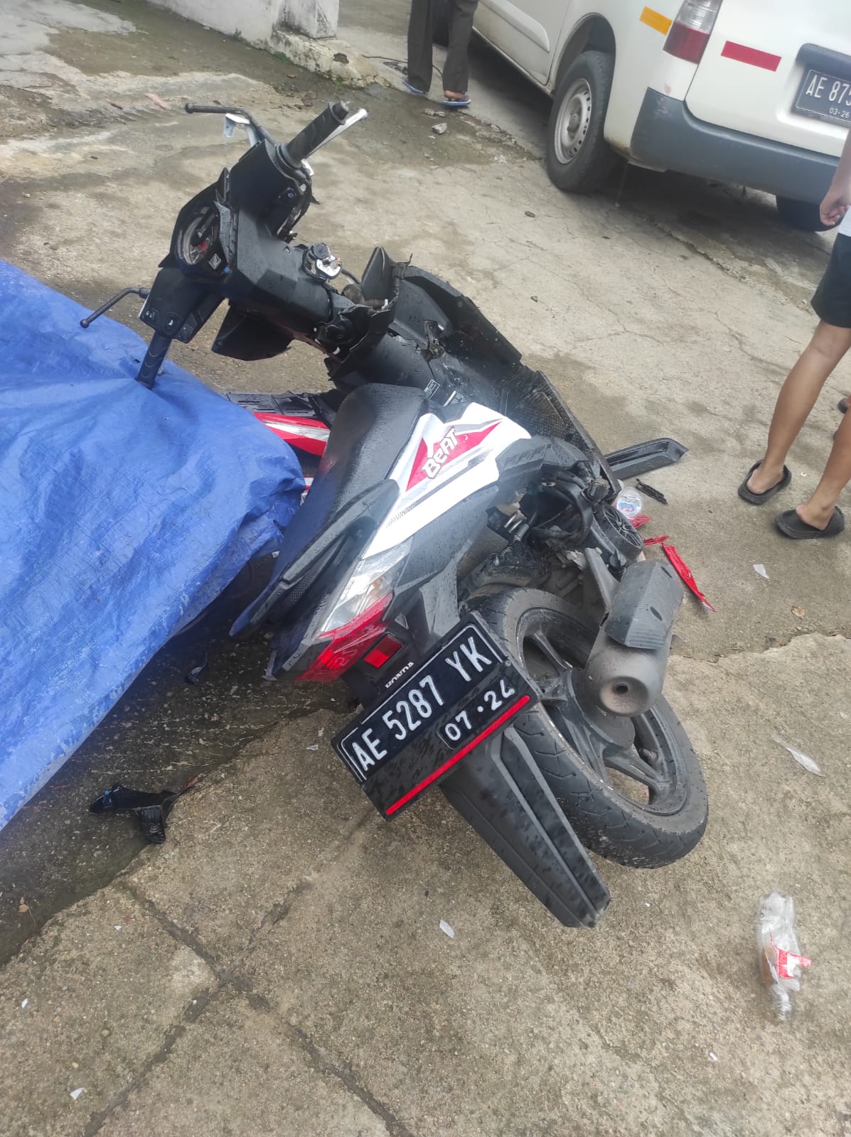 Dalam kejadian laka lantas ini, kedua kendaraan yang terlibat kecelakaan mengalami kerusakan parah. Untuk bagian bodi samping mobil terlihat ringsek karena hantaman motor.
