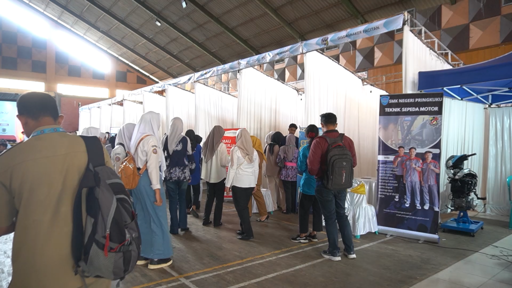 PACITAN – SMK Negeri Pringkuku kembali menghadirkan ruang temu antara pencari kerja dengan dunia industri melalui gelaran Job Fair dan Edu Fair. Acara yang digelar di Gedung Gasibu Swadaya Pacitan, Senin (24/11/2025) pagi ini, berlangsung meriah dan dipadati ratusan pengunjung.