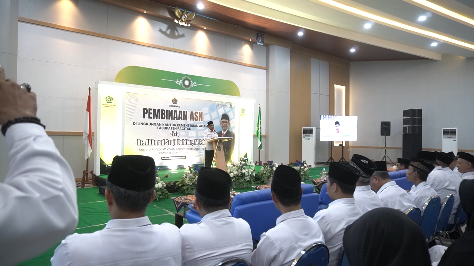 Kementerian Agama Kabupaten Pacitan menggelar pembinaan bagi 671 Aparatur Sipil Negara dari berbagai satuan kerja. Kegiatan berlangsung di Gedung Akademi Komunitas Negeri Pacitan, Selasa siang. Acara ini menghadirkan Kepala Kantor Wilayah Kementerian Agama Provinsi Jawa Timur dengan fokus penguatan integritas, etos kerja, serta percepatan program prioritas Kementerian Agama.