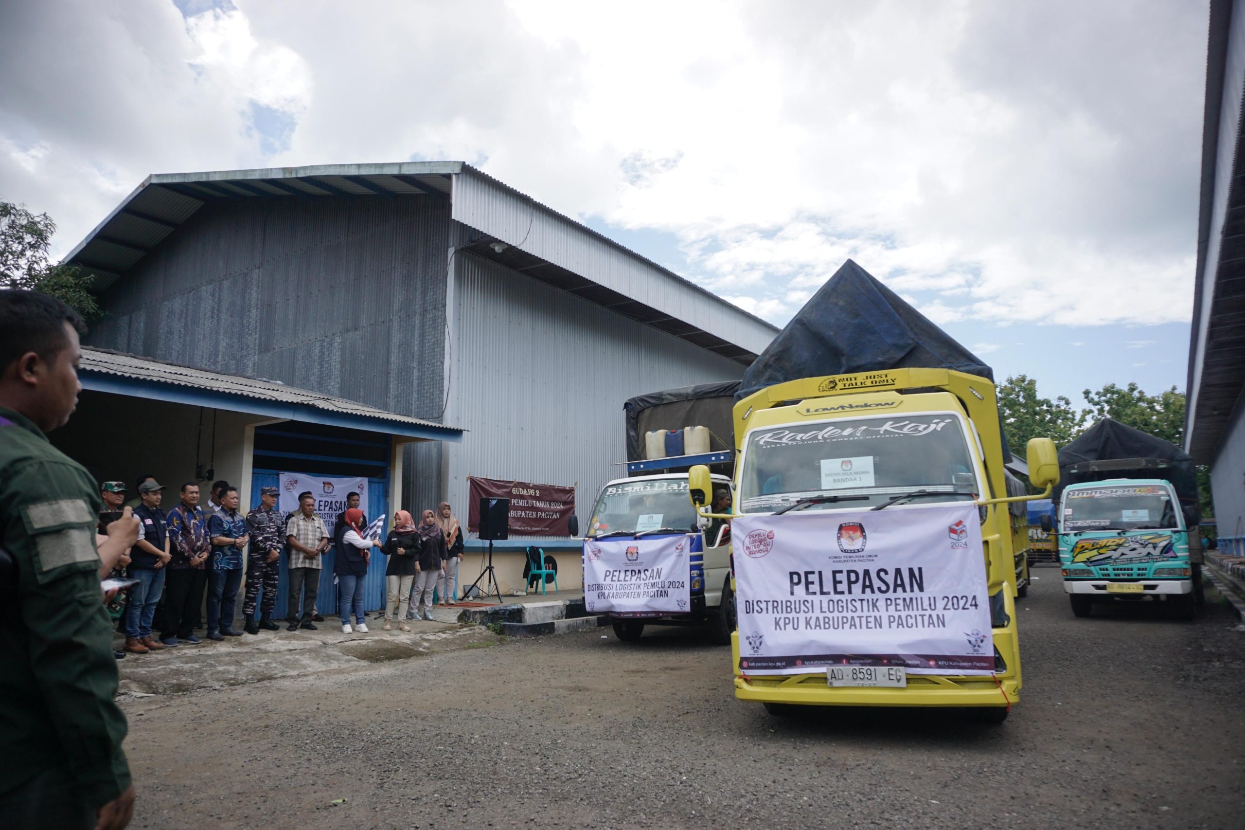 PACITAN -KPU Kabupaten Pacitan mulai mendistribusikan logistik Pemilu 2024 kepada panitia pemilihan kecamatan (PPK) di 12 kecamatan mulai Minggu (11/02/24).
