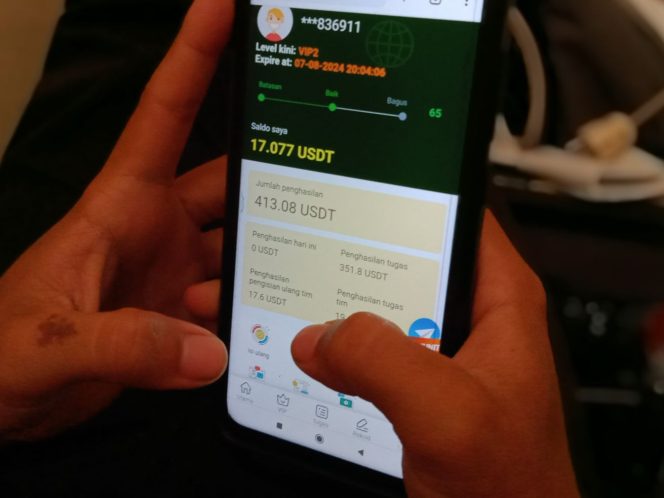 Untuk memperoleh cuan itu, ia diminta deposit dana sekitar 1000 dolar US atau setara 15 juta rupiah (tergantung nilai tukar). Awalnya, ia berhasil memperoleh penghasilan, namun sebelum modal deposit yang ia setorkan nilainya kembali, penghasilan dolar dari aplikasi tiba-tiba tidak bisa dicairkan.