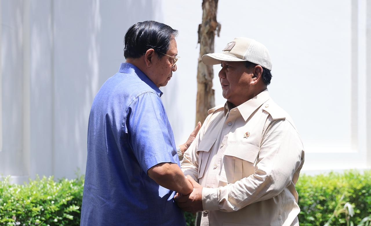 PACITAN – Calon Presiden nomor 02 Prabowo Subianto kembali sowan dengan Dewan Pembina Partai Demokrat Susilo Bambang Yudhoyono (SBY) di Pacitan, Jawa Timur, Sabtu (17/2)