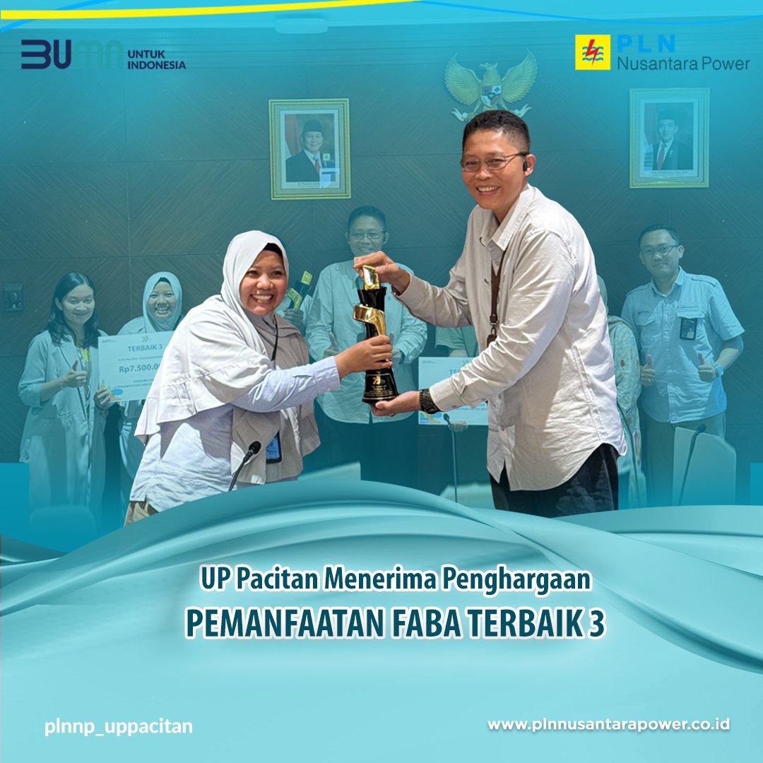 Bertempat di Kantor PT PLN Kantor Pusat Jakarta, PT PLN Nusantara Power UP Pacitan berhasil membawa pulang penghargaan yang diberikan oleh bapak Irwan Amri selalu VP Lola dan Pemanfaatan FABA PT PLN (Persero) (20/11)