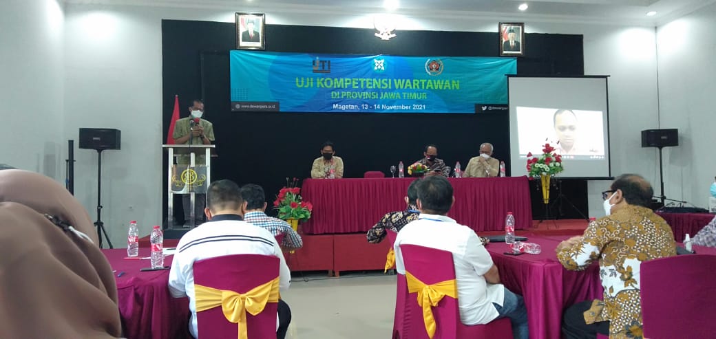 Magetan, Jawa Timur-Sebanyak 54 Jurnalis dari berbagai media cetak, online, dan televisi mengikuti kegiatan Uji Kompetensi Wartawan (UKW) tahun 2021.Kegiatan yang akan berlangsung dua hari mulai 13-14 November 2021 ini diselenggarakan di hotel Bukit Bintang, Jl. Mayjen Sukowati, Kecamatan Kota, Kabupaten Magetan.
